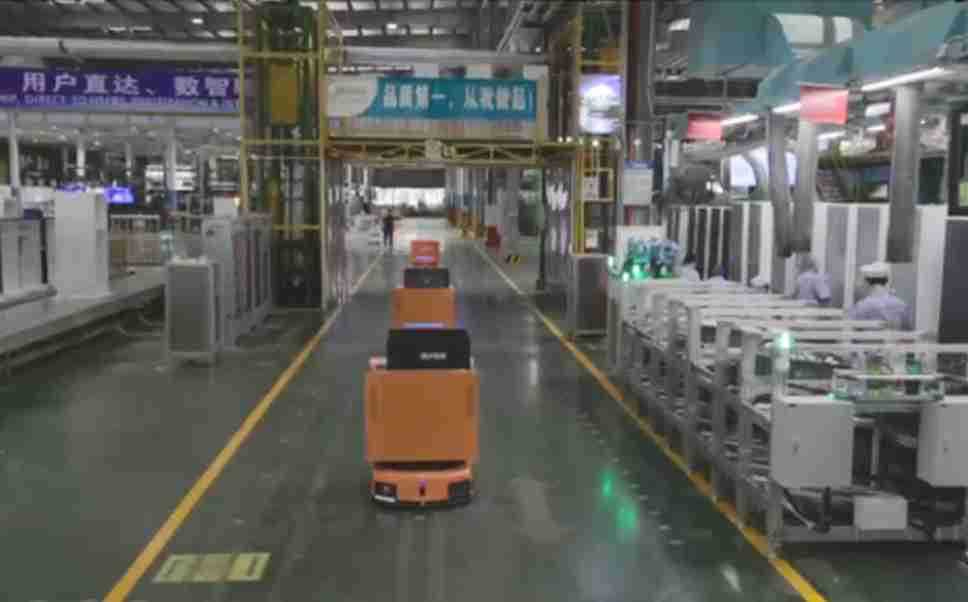 为车载冰箱物流配送打造的智能解决方案,,包含产中物流通过潜伏举升AMR搬运至线边,,,,产后成品物流智能仓储,,,流程包含产中物流智能齐套入库,,线边安灯叫料AMR智能配送至线边,,成品入库、、、、出库,,,通过无人堆高车机器人,,,智能仓储管理替代人工作业管理,,,实现更高存储、、、更高效率、、更具柔性化的解决方案。。。