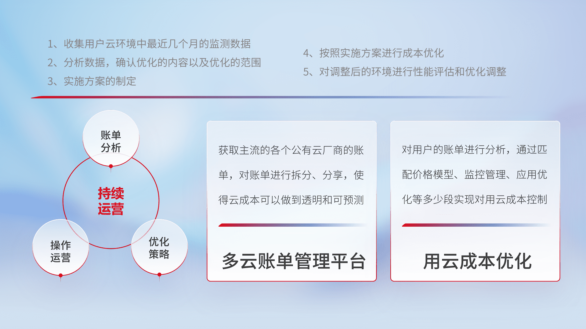 运用智能化工具分析云资源,,提供日常费用可视化工具,,,自动账单拆分,,,成本优化云上费用,,,降本增效。。
